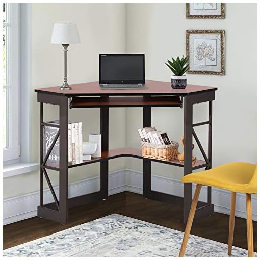 Multifunctional home office computer desk with storage shelves and keyboard tray features: Small corner computer desk *see offer details. Perfectly designed for corners, this piece saves precious room space as well as provides a personalized work area. 4.2 out of 5 stars with 113 ratings. Corner desks usually have a surface for a desktop and a small compartment for the tower and other accessories. Corner desks are designed to fit in corners of a room, taking up less space. 46.5" wide x 19" deep x 34.5 high floor. For small workspaces, floating desks are mounted directly into the wall to reduce the amount of room you need.