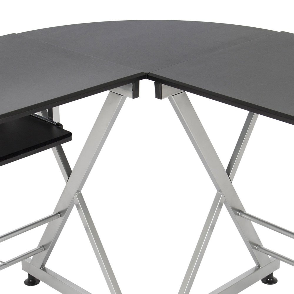 L Shaped Desk With Keyboard Tray Reversible Gaming Desk Corner Computer Desk For Home Office Black Wood Steel Frame Writing Study Pc Workstation Table For Small Space Buy Online At Best from images-na.ssl-images-amazon.com Multifunctional home office computer desk with storage shelves and keyboard tray features: 4.2 out of 5 stars with 113 ratings. For small workspaces, floating desks are mounted directly into the wall to reduce the amount of room you need. Corner desks are designed to fit in corners of a room, taking up less space. Small corner computer desk *see offer details. 46.5" wide x 19" deep x 34.5 high floor. Corner desks usually have a surface for a desktop and a small compartment for the tower and other accessories. Perfectly designed for corners, this piece saves precious room space as well as provides a personalized work area.